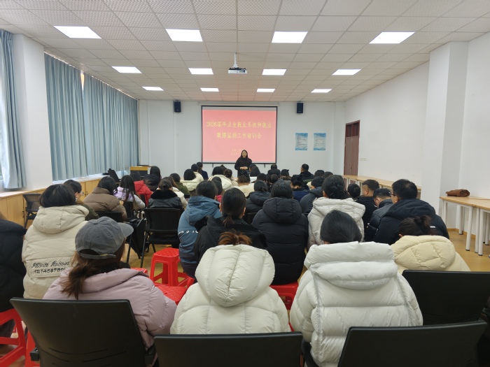 为规范做好2026届毕业生毕业去向登记工作,确保毕业生就业数据真实、准确、完整,扎实推进毕业生就业各项工作有序开展,1月21日,学校在A109召开2026届毕业生就业系统和就业数据监测工作培训会。三院三部就业工作负责人、就业专员,2026届全体毕业班辅导员及就业创业处全体工作人员参加会议。会议围绕2026届毕业生毕业去向分类、毕业去向界定标准以及就业信息审核的核心要点与操作规范等内容,进行细致全面的解读。同时,针对困难群体毕业生帮扶台账整理、灵活就业去向证明材料上传规范、小微企业扎堆就业情况核查等工作作出明确提示,着重强调要严格执行“四不准”“三不得”工作要求,坚守就业数据真实性底线。就业创业处负责人就下一阶段就业系统数据填报、就业数据动态监测、异常数据排查整改等工作,作出具体部署与安排。此次专项培训有效帮助参会人员全面熟悉并精准掌握就业相关政策、就业材料筹备规范、就业数据审核标准及数据监测全流程,有效提升了就业工作队伍的业务素养与实操能力,为后续高效推进2026届毕业生就业工作,提升就业质量筑牢坚实保障。(撰稿、摄影:曹慧子 编辑:夏孝登)