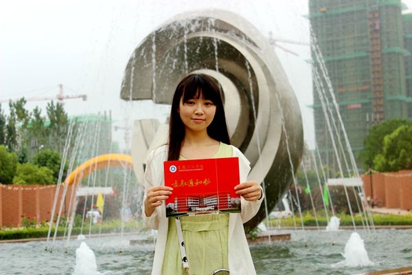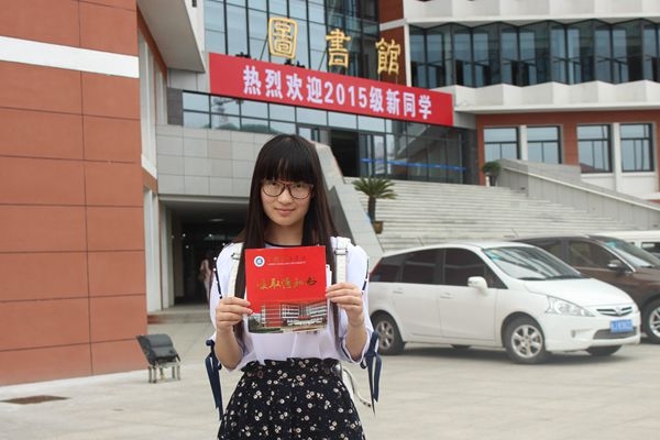 “我叫严月月,是外语学院新生。从踏上校车的刹那,心中就有了各种激动与憧憬,各种大学会发生的场景一遍遍浮现,校车停了,三联我来了!”