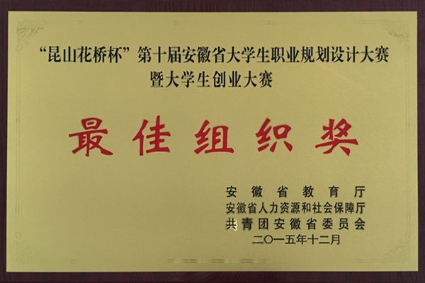 12月27日,“昆山花桥杯”第十届安徽省大学生职业规划设计大赛暨创业大赛在安徽医学高等专科学校落幕。我校荣获最佳组织奖。