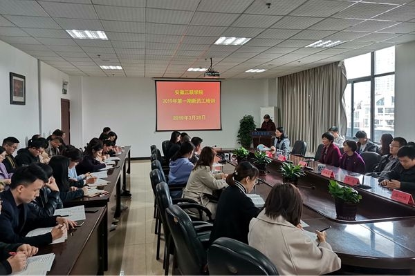 3月28日、29日中午,我校在图书馆T518会议室举办2019年第一期新员工培训会。校长助理蔡文芬及综合办、师资处、科研处等部门负责人担任本次培训的主讲教师,会议由校人事处处长兰先兰主持。