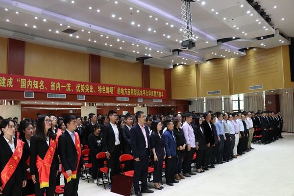 大会在嘹亮的中国共青团团歌《光荣啊,中国共青团》中圆满落下帷幕。此次大会是在全国上下深入学习贯彻习近平总书记在纪念五四运动100周年大会上的重要讲话精神之际,召开的一次重要会议,总结了一年来我校共青团战线的各项成果,展现了我校团员青年的良好风貌。学校将继续带领全体团员青年传承和弘扬“爱国、进步、民主、科学”的五四精神,高举青春旗帜,坚定理想信念,锤炼道德品格,勇担时代重任,在将学校建成“国内知名、省内一流、优势突出、特色鲜明”的地方应用型高水平大学和实现中华民族伟大复兴的新征程中,唱响无愧于祖国、无愧于时代、无愧于党和人民的青春赞歌!(撰稿:朱悦 范苗苗 徐海洋 摄影:王卉 方兴 王超 编辑:方小庆)