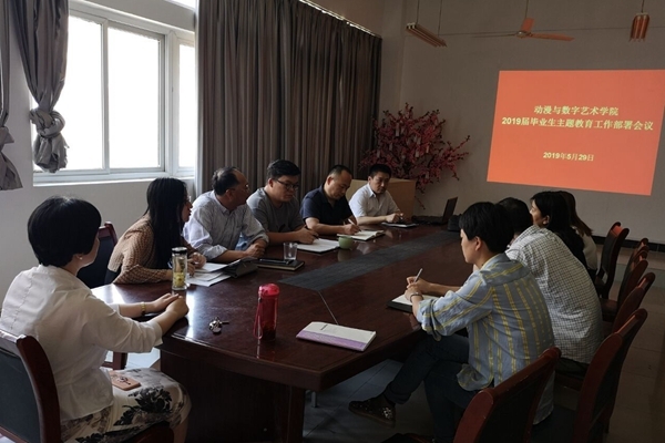 为加强对毕业生的思想引领和教育管理,确保毕业生安全、文明、有序离校。5月29日中午,动漫与数字艺术学院于H楼会议室召开会议部署2019届毕业生主题教育工作。