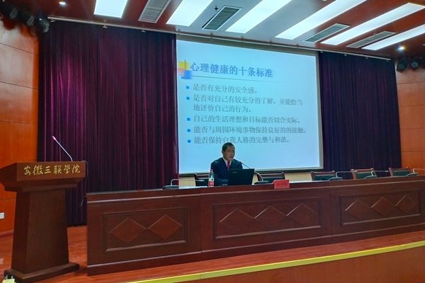 为深入贯彻落实全国全省教育大会、高校思想政治工作会议和《高等学校学生心理健康教育指导纲要》等会议与文件精神,进一步加强我校辅导员队伍建设,切实提升心理育人工作质量,11月22日下午,我校在学术报告厅举办了大学生心理健康教育工作培训会,本次培训由安徽医科大学心理健康教育中心副主任叶建国主讲。副校长王瑞友出席培训会,各二级学院学管副院长、全体辅导员,班级心理委员和宿舍安全信息员代表,学生处相关人员近300名师生参加了培训会。