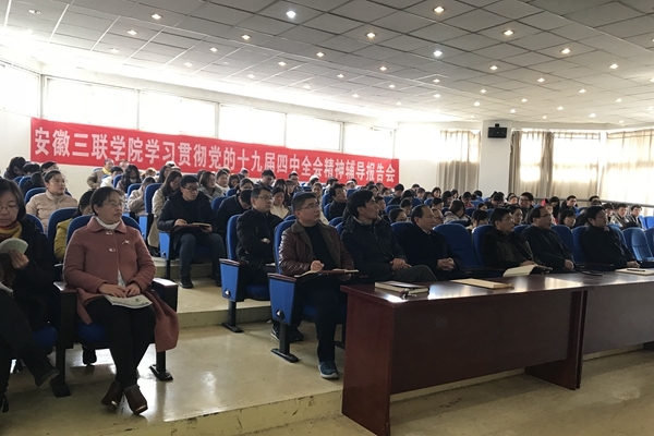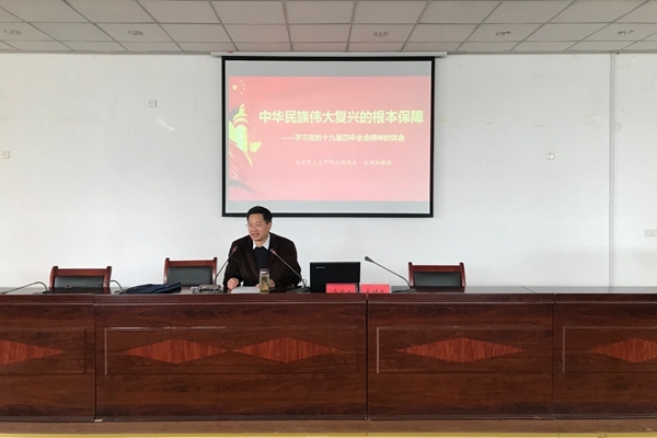 为深入推进学习贯彻党的十九届四中全会精神,11月28日,我校马克思主义学院品牌院长凌斌和教授,在B01学术报告厅,作题为“中华民族伟大复兴的根本保障—学习党的十九届四中全会精神”辅导报告。校党委副书记鲁先长,校党委委员、副校长王瑞友,党办、宣传部、马克思主义学院、学生处、团委等部门主要负责人,各基层党委(党总支)书记、副书记,马克思主义学院教师、全体辅导员,中国特色社会主义理论研究会社团骨干、党员教师及学生代表共计200人聆听了报告。