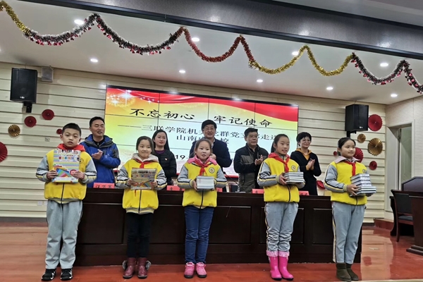 11月27日,党群党支部赴肥西山南中心学校开展“冬日送暖、爱心助学”志愿服务活动,并赴小井庄包产到户纪念馆开展主题党日活动,积极发挥党员先锋模范作用,持续深化“不忘初心、牢记使命”主题教育。学校党委副书记鲁先长以双重身份参加活动。