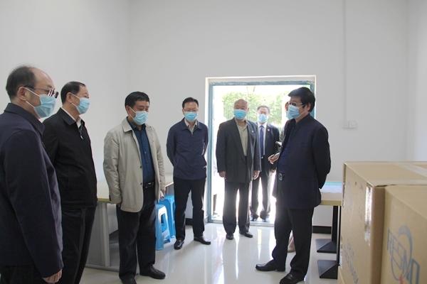 调研组一行首先来到学校生活区的防疫物资仓库,在听取了我校在防疫部署方面的工作介绍后,实地查看了我校在消杀用品、防护口罩、额温枪等疫资方面的落实情况。调研组对准备工作表示肯定,并提议要把风险想在前,把工作做在前,进一步加大防控物资储备力度,严格把关质量,投入充足经费,保证用量不紧缺。
