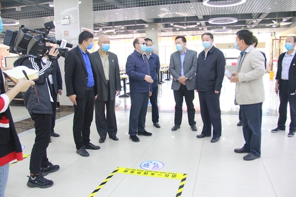 最后调研组又对宿舍、食堂等校园公共空间防控措施和环境卫生进行详细了解,十分关心学生进入食堂体温检测通道设置及各项流程规范,对发现的问题进行了现场交办。“学生就餐要保持安全距离”、“食堂要确保食品安全和环境卫生”、“食堂服务人员健康管理至关重要”,调研组每到一处,都给与反复叮嘱。调研组尤其强调,学生群体备受社会各界关注,人员密集,流动性大,防控的复杂程度也更艰巨,学校各部门要充分认识复学前后疫情防控的艰苦性,集中力量做好准备,确保万无一失。