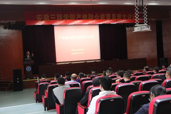 金会庆指出,本次大讨论是在安徽三联集团第三次创业的背景下召开的,也是学校贯彻落实集团产学研一体化战略的重要行动。大讨论的任务是要确定学校内涵式发展新目标,推动学校转型发展;要转变思想观念,把全校上下统一到深化产教融合上来,营造充分理解、积极支持、主动推进的良好氛围;要统一部署统一行动,深化产教融合教育教学改革,实现学校人才培养与社会需求无缝衔接,提高人才培养质量和社会服务水平。