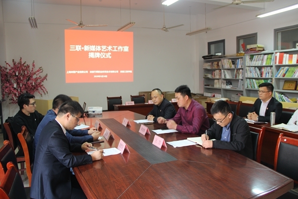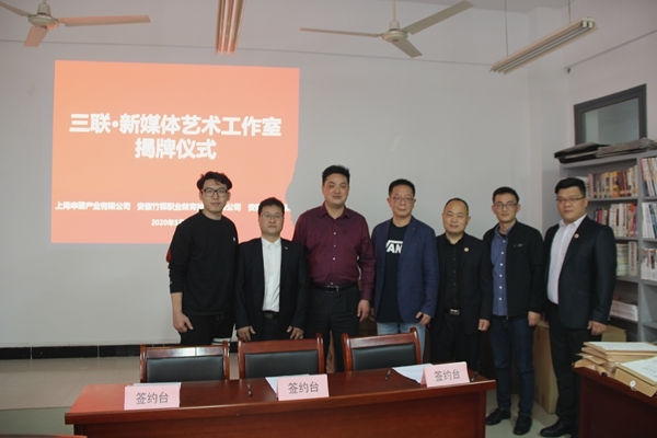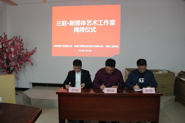 5月10日中午,安徽三联学院与上海申磬产业有限公司、安徽竹棵职业教育技术有限公司合作共建“三联•新媒体艺术工作室”签约仪式在H206会议室举行。上海申磬产业有限公司总经理助理范宝斌、项目经理杜凌云、安徽竹棵职业教育技术有限公司企划部主任赵贵东;学校副校长姜发根、实践教学部部长王力、动漫与数字艺术学院执行院长孙义及其他院领导参加了合作协议签约仪式。会议由孙义主持。