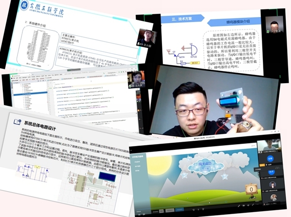 答辩时,学生们详细陈述了论文的选题、整体框架、研究方法、系统演示、硬件仿真、创新点以及不足之处,并简要汇报了在学期间所取得的研究成果。答辩老师的细致点评、中肯的修改意见以及对学生的肯定让同学们感受到了老师们的细心、严谨与关爱。这次答辩学院省略了传统的致谢环节,但感恩不能少。整个答辩过程在线交流顺畅,效果良好,组织规范,并进行了部分录屏与截屏作为答辩记录留存,可查询,可追溯,答辩质量经得住检验。