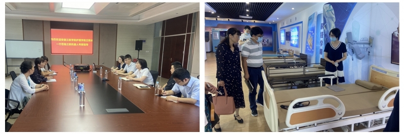6月4日,院护理学院品牌院长章合生、执行院长兰先兰、副院长王飞等一行前往安徽三联机器人科技有限公司(以下简称机器人公司)考察交流,共商健康养老校企合作。