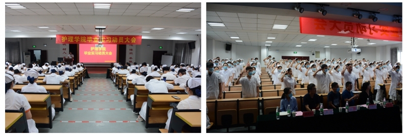 最后,2021届全体实习生高举右拳共同庄重宣誓,南丁格尔誓言响彻会场。(撰稿、摄影:护理学院 编辑:隋欣)