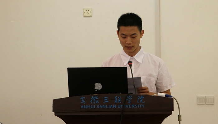 2018级计算机科学与技术的田仲同学作代表发言,向广大青年学生们弘扬“奉献、友爱、互助、进步”的志愿服务精神,号召广大青年们发扬“公益三联 大爱江淮”的校园文化精神。