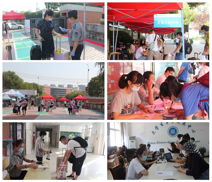 为及时了解学生返校现场情况,省教育督导专员、校党委书记李明阳,校党委副书记、副校长鲁先长,各二级学院执行院长等分别前往生活区现场查看,与工作人员、返校学生亲切交谈,并深入食堂、学生宿舍等场所,检查指导开学工作;由学生处、总务处、保卫处、校医院和各二级学院组成的报到工作组每日早早到岗,有序组织,密切配合,严格做好证件查验和体温测量等现场管控工作;辅导员、党员志愿者等工作人员不顾连日的高温酷暑,始终坚守在接待一线,细致耐心的为学生办理报到事宜。