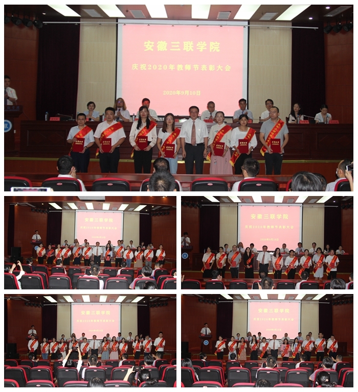 大会在庄严的国歌和校歌声中拉开序幕,副校长蔡文芬宣读表彰文件。大会表彰了安徽省教学名师、省教坛新秀、入选2020年安徽省百位卓越教学名师(新秀)风采展示,省在线教学优秀案例,安徽三联学院第十五届青年教师教学基本功大赛、2019-2020学年第二学期在线教学优秀案例、第六届辅导员素质能力大赛、2018-2019学年优秀教研室等奖项的获得者,共计47人次。余皖生董事长为获奖教师颁发荣誉证书并合影留念。