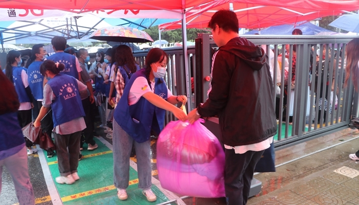 金秋送爽、丹桂飘香,在这个收获的季节里,迎来了我校2020级新生。他们脸上洋溢着笑容,带着对即将到来的大学生活的向往,朝气蓬勃地走进校园。我校志愿者们也在校门口辛勤地迎候着新生的到来,为其搬运行李,做好向导。9月17日上午,小雨霏霏,我校2020年迎新工作正式开展。