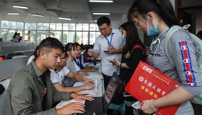 今年由于疫情的原因,家长不能陪同学生入校报到。学生个人进入校园后,志愿者们将其行李放在寄存点,带领着他们进入校园教学区办理入学手续,紧接着又带领他们领取生活用品,办理入住宿舍等多项工作。在不辞辛劳、尽职尽责的教职工和勤勤恳恳、无私奉献的志愿者的帮助下,新生报到工作有条不紊地进行着。期间,校领导深入报到现场、生活区检查迎新工作,亲切问候新生,让新生们感受到了三联人的热情和三联校园的温暖。