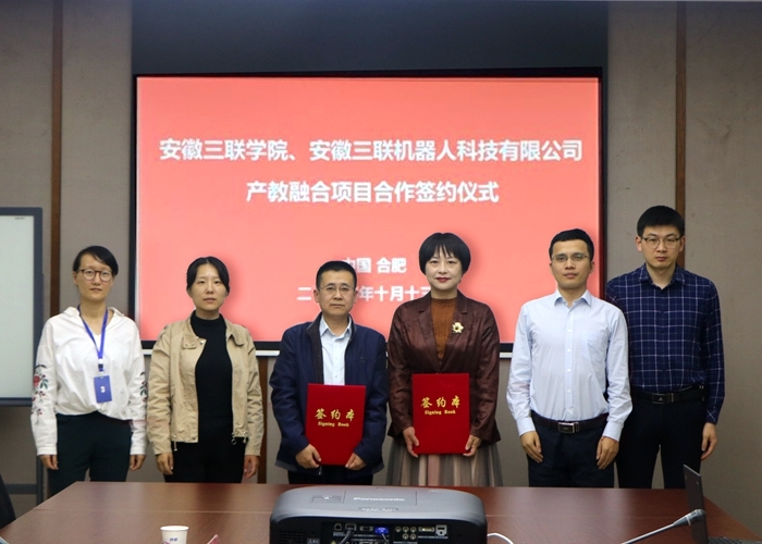 10月13日,机器人工程学院与安徽三联机器人科技有限公司就《老年人健康评估方法研究与模型软件开发》项目在三联机器人科技有限公司会议室举行签约仪式,公司总经理梅珑、研发总监房志东、办公室主任司马超、科技部主管尤红梅及机器人工程学院班子成员、项目负责人参加仪式。