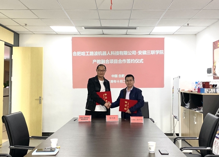10月23日,机器人工程学院与合肥哈工路波机器人科技有限公司就等离子消杀机器人实现扩展功能的相关软件算法研究合作项目在合肥哈工路波机器人科技有限公司会议室举行签约仪式,公司总经理孙逊、教学及竞赛研发部门负责人芦飞、马文博及机器人工程学院班子成员、项目负责人参加仪式。