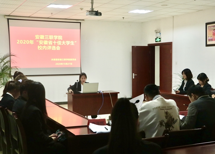 会议首先对本次评选工作、专家评审程序以及近年来我校省十佳大学生获奖情况做了详细汇报和解读。经前期广泛宣传,二级学院择优推荐24名候选人,参评者分别从道德示范、学风创优、科技创新、社会实践、自强奋斗等8个类别进行阐述。此次评选会采用线上线下汇报相结合的方式,4名校外实习同学通过腾讯会议APP进行线上汇报,同学们通过PPT汇报个人成长经历,以及各自取得的成绩与奖项,精彩纷呈,各具特色,充分展现三联学子积极向上的蓬勃朝气和永不言败的拼搏精神。