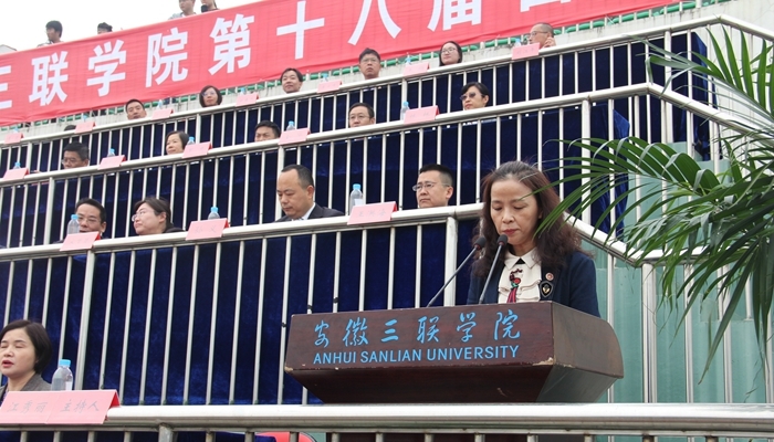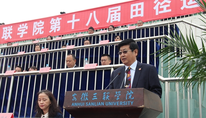运动点燃激情,校园别样精彩。11月5日,安徽三联学院第十八届田径运动会在我校体育场隆重举行。金会庆校长因公出差,特别发来慰问信息,向大家致以最诚挚的问候!出席开幕式并在主席台就座的主要领导有:省教育督导专员、校党委书记李明阳,校党委副书记、副校长鲁先长,副校长姜发根、张世伟、金哲、蔡文芬,校财务总监范兆红,校长助理傅炜,各二级学院及部门主要负责人。参加开幕式的还有各二级学院代表队全体运动员,赛会志愿者、师生代表等。开幕式由副校长江秀丽主持。