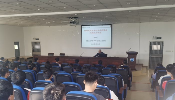 为献礼三联集团30华诞,营造良好的学术氛围,11月11日,机械工程学院邀请合肥工业大学汽车与交通学院博士生导师陈无畏教授在我校B01报告厅做题为“自动驾驶汽车的发展历程与关键技术概述”的学术报告,报告会由机械工程学院黄先伟副教授主持,部分师生代表到场聆听。