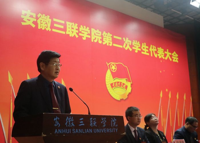 11月13日,安徽三联学院第二次全体学生代表大会隆重召开。校党委副书记、副校长鲁先长,校党委委员、副校长姜发根,副校长蔡文芬,校党委委员、工会主席王瑞友,校党委委员、党办主任、组织部部长李斌,校党委委员、经济管理学院执行院长占海文,校党委委员、财会学院执行院长宋梦岚,校党委学工部部长、团委书记李燕出席开幕式。参加此次开幕式还有各学院分党委(党总支)书记、各院团总支书记以及175名学生代表大会正式代表。开幕式由校团委副书记李源晖主持。