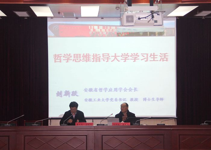 12月3日下午,安徽工业大学党委书记、全国哲学应用学会副会长、安徽省马克思主义哲学应用学会会长、安徽省演讲学会常务副会长、教授、博士生导师刘新跃莅临竹稞大讲堂,我校师生代表300余人在图书馆学术报告厅现场聆听,讲座由校党委副书记、副校长鲁先长主持。