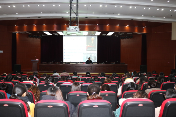 12月2日,安徽省比较文学学会会长、安徽大学外语学院副院长、博士生导师戚涛教授应邀来访我校,在学术报告厅作了题为“现代性、超验主义与美国式共同体的警示意义”的学术讲座。讲座由外语学院副院长、翻译与比较文学中心负责人余鹏主持。外语学院师生代表300余人聆听了讲座。