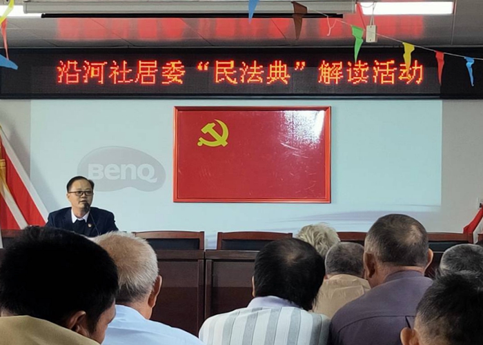 9月20日,新站高新区沿河社居党委特邀我校马克思主义学院副教授、安徽省委讲师团青年宣讲名师高元龙来到社区为党员干部及群众讲解、普法。今年5月28日通过的《中华人民共和国民法典》是新中国成立以来第一部以“法典”命名的法律,被称为“社会生活的百科全书”。讲课中,高元龙用通俗简朴的语言和生动案例,就《民法典》中见义勇为免责、离婚冷静期的设定、小区共有场所收入归业主、高空抛物坠物等与大家日常生活息息相关的问题及纠纷进行了讲解,并对大家生活中遇到的法律难题进行解答。