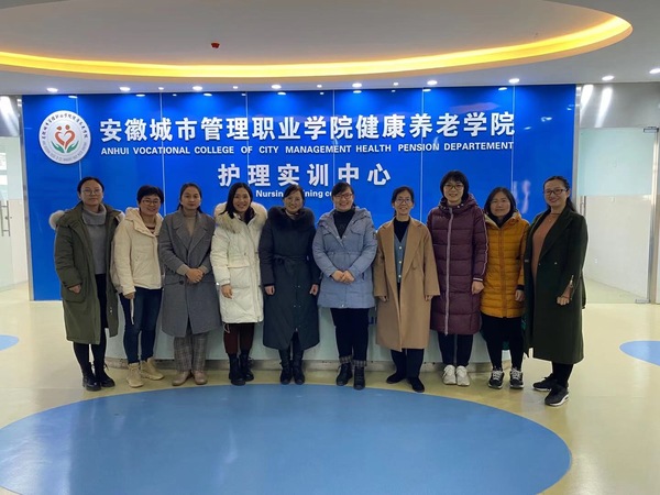 为筹划健康养老专业群建设,12月21日,护理学院执行院长院长兰先兰带队前往安徽城市管理职业学院健康养老学院考查交流。