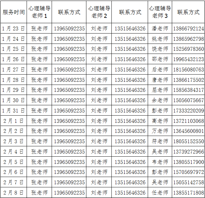 1.心理支持电话:服务团队及联系方式见附表;