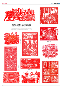 2月14日,为了庆祝牛年新春,安徽日报在艺苑菁华版刊登了周鸣老师及其他剪纸艺术名家创作的十余幅作品。周鸣老师的作品《幸福孺子牛》,利用剪纸艺术的表现手法,把人民对牛年幸福生活的期盼寓含深意的表达出来,得到读者的一致好评。