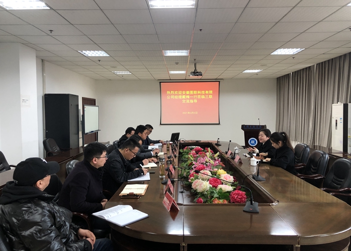 3月5日,我校与安徽图联科技有限公司在T608会议室举行校企合作洽谈会。图联科技公司校企合作经理戴梅、人力资源部部长付媛媛,副校长姜发根、操晓峰,交通工程学院、计算机工程学院、财会学院、动漫与数字艺术学院、实践教学部相关负责人参加了洽谈会。会议由姜发根主持。