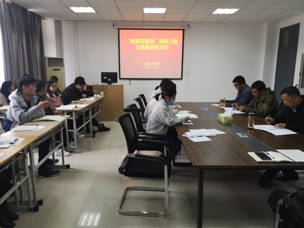 近日,交通工程学院举办“脱贫攻坚战”先进人物典型事迹分享会,学院领导班子及全体教职工参会,会议由交通工程学院党委书记王金果主持。
