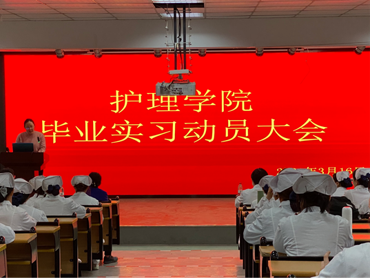 为进一步完善毕业生实习工作,引导学生做好实习前各项准备,3月16日,护理学院在报告厅召开毕业实习动员大会。安徽医科大学第一附属医院教学部主管申小侠应邀参加会议,护理学院领导班子成员、教师代表、全体辅导员、优秀实习生代表及全体2018级实习生参会。会议由学管副院长刘晓蓉主持。