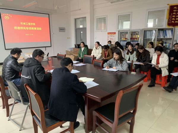 为进一步弘扬新时代高校教师师德风尚,巩固学院师德师风建设成效,3月19日,机械工程学院在G408会议室举办了师德师风专项教育活动。学院全体教职员工参会,会议由教学副院长王兴主持。
