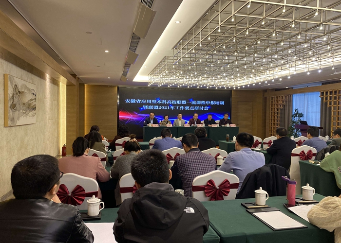 3月27日,由安徽省应用型本科高校联盟主办,铜陵学院承办的省应用型本科高校联盟一流课程申报培训暨联盟2021年工作要点研讨会在铜陵举行。铜陵学院校长倪国爱、联盟秘书处秘书长缪群道出席会议,联盟22所成员高校教务处处长、课程负责人参会。我校副校长蔡文芬、教务处副处长张薇参加了本次会议。