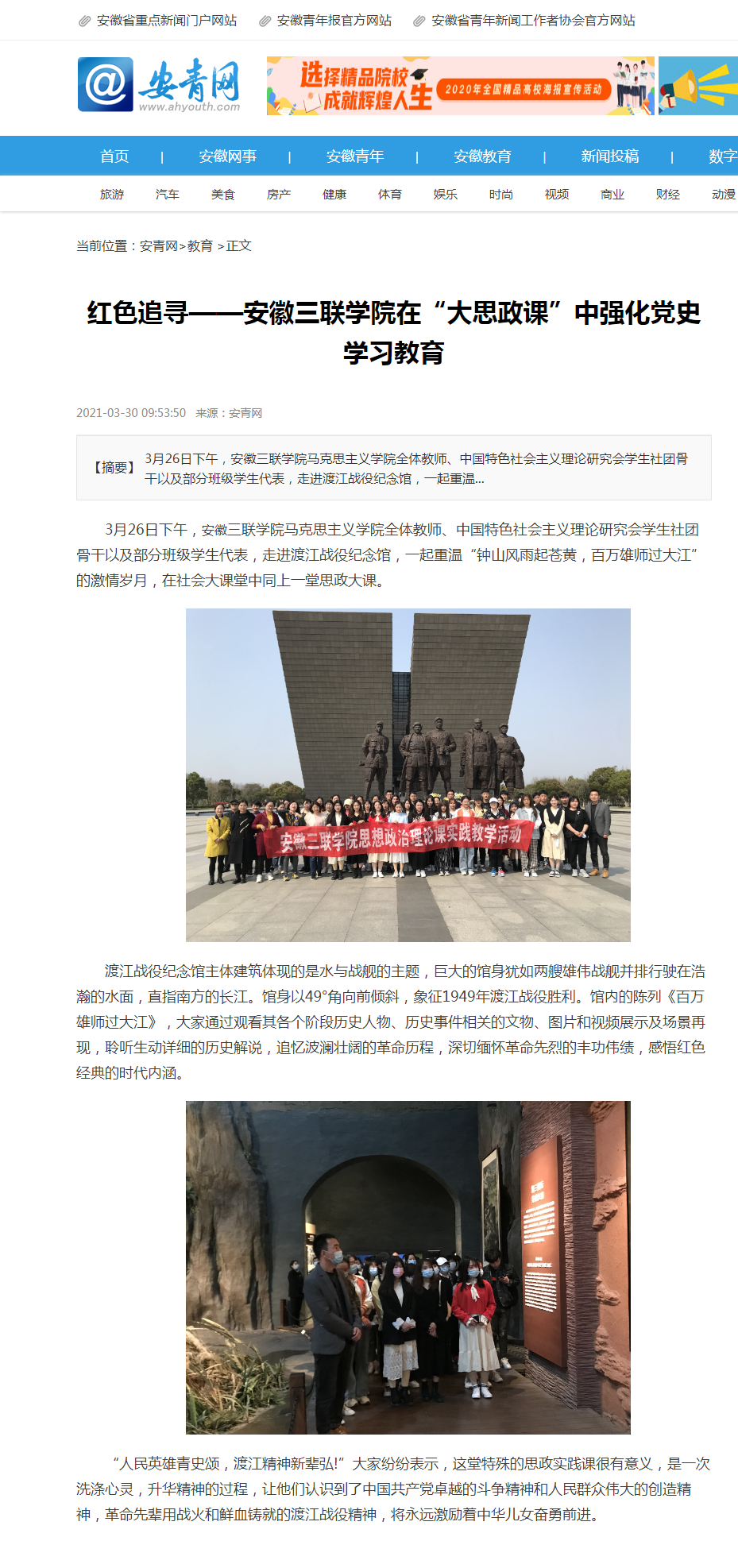 安青网:安徽三联学院在“大思政课”中强化党史学习教育