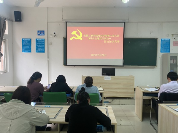 为进一步学习贯彻习近平总书记关于正确认识党的历史重要论述,引导广大党员重温党的光辉历史,3月30日,财会学院教工党支部在A213教室举办了“学党史,跟党走”的主题党日知识竞赛活动。