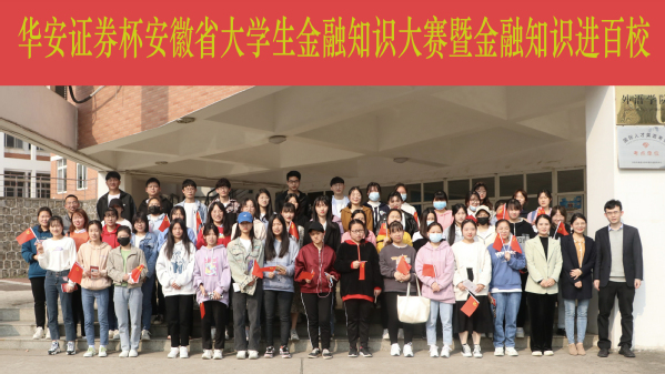 4月15日下午,由共青团安徽省委、安徽省青联、安徽省学联、安徽省金融青联联合主办,华安证券承办的“华安证券杯”安徽省大学生金融知识大赛暨金融知识进百校宣讲活动在我校B01报告厅隆重举行。