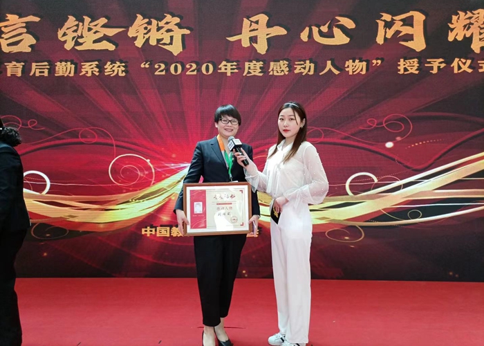 2021年4月9日-11日,2021中国教育后勤展览会在上海世博展览馆举办,开幕式上举办了全国教育后勤系统2020“感动人物”授予仪式。全国共35位个人、10个集体受到表彰,我校校医院院长刘保莉获得“2020年度感动人物”荣誉称号,也是安徽省唯一一名被授予奖项的高校后勤人员。