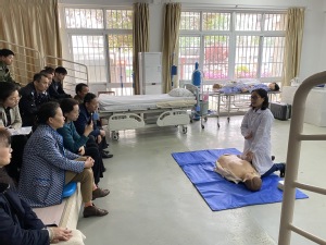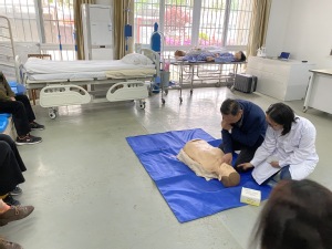 培训现场,护理学院吴慧君老师用通俗易懂的语言讲解心肺复苏理论知识,并展示操作流程;学员现场模拟操作,并接受纠正。最后,吴慧君老师再次强调,心肺复苏必须争分夺秒,复苏越早,存活率越高,同时注意操作要点:一是气道充分打开;二是胸外按压、人工呼吸的正确操作;三是胸外按压、人工呼吸有效性判断。