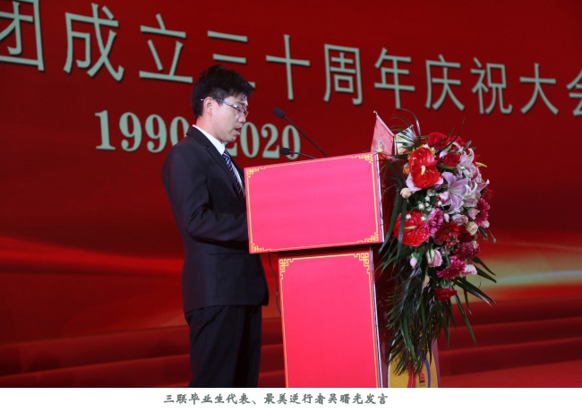接着,三联集团执行总裁余皖生,三联员工代表、首位加盟三联的大学毕业生潘涛,三联毕业生代表、最美逆行者吴曙光先后发言。
