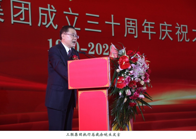 执行总裁余皖生深情回顾了三联三十年的发展历程,他表示三联创立三十年,已全面完成第一、二次创业的发展规划,取得了伟大的历史性成就。2021年是三联第三次创业的开启年,也恰逢祖国“十四五”规划的开局年。在习近平新时代中国特色社会主义思想指导下,全体三联人将坚持新发展理念,构建新发展格局,坚守初心、聚力前行,矢志不渝地为建设“百年老店”建功立业!