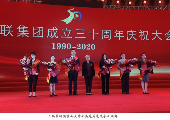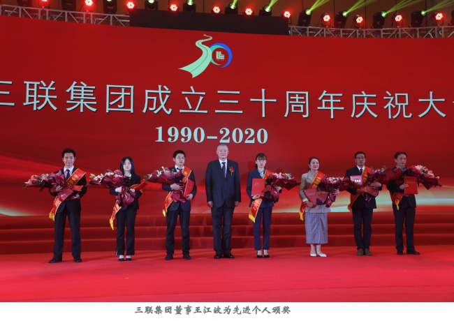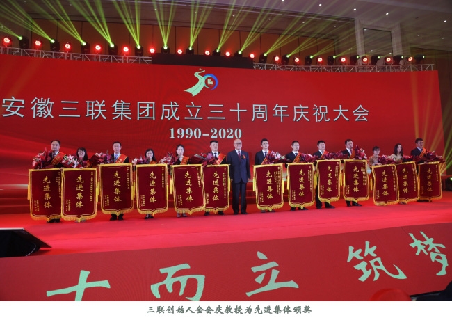 三十载风云激荡,三联人风雨同舟。本次大会对三联集团2020年“先进集体”“先进个人”进行表彰,三联创始人金会庆教授为13个先进集体颁发锦旗及奖金,三联集团监事会主席金美莲、三联集团董事王江波分别为13个先进个人颁发荣誉证书及奖金。