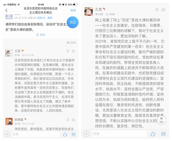 5月22日下午,按照省教育厅和学校部署,我校万余名师生相聚云端,收看了由教育部社科司与人民网联合组织的“同上‘四史’思政大课”第四场“同上‘社会主义发展史’思政大课”教学视频直播。学生处、马克思主义学院牵头组织,各二级学院细致安排,积极引导学生收看、交流心得。同学们纷纷表示,要汲取党史传承的磅礴力量,扛起时代赋予青年的使命担当。