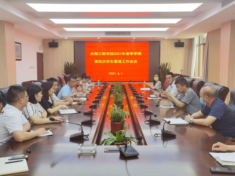 会上传达了省教育厅有关学生资助和高校思想政治工作能力提升项目相关文件精神,介绍了我校2021年国家三金指标评审工作情况和安徽省“三全育人”高校优秀专职辅导员岗位津贴指标分配情况,并就近期的意识形态工作做了重要部署,对学生宿舍管理、资助育人、反电诈宣传等日常管理工作进行了详细的安排。