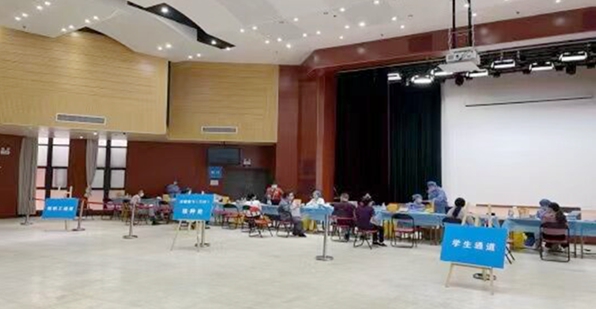 接种期间,校领导一行到达现场,仔细询问疫苗接种进度、安全性等情况,切实关心医务人员身体状况、工作强度,并带头接种。(撰稿:杨雪 摄影:杨雪 编辑:刘欢)