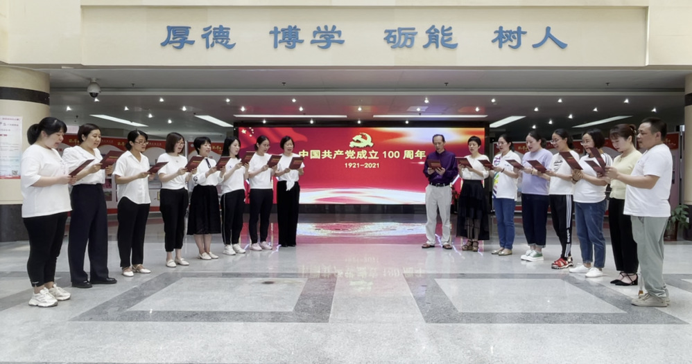 在中国共产党百岁华诞到来之际,为宣传党的光辉历程,深入践行习近平新时代中国特色社会主义思想,进一步弘扬和传承党的优良传统。7月1日图书馆全体成员观看了建党百年七一庆典活动并举行了庆建党百年朗诵活动。